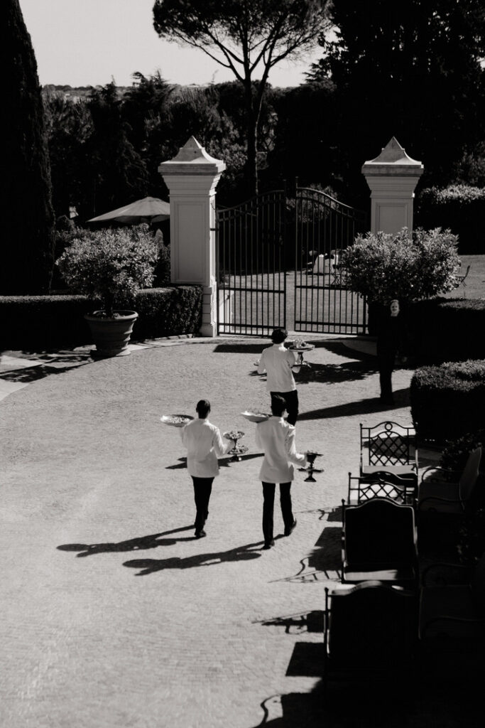 The festivities continued with a lively reception featuring a spirited Horah dance that had everyone on their feet, showcasing the couple’s vibrant personalities and the joyous energy of their union. Guests dined on exquisite Italian cuisine while enjoying sweeping views of St. Peter’s Basilica and the villa’s lush gardens. Jo and Greg’s modern style, paired with the timeless Roman setting, created a celebration that was both sophisticated and intimate.